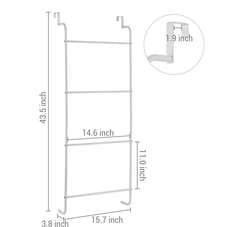 Approximate Dimensions 16.1 L x 3.3 W x 43.5 H Mounting Brackets 1.7 W x 3.1 H Rungs 15.2 L 10.8 H apart inchesits most standard doors, compatible with 4 rung ladder over the door towel rack installation scenarios.