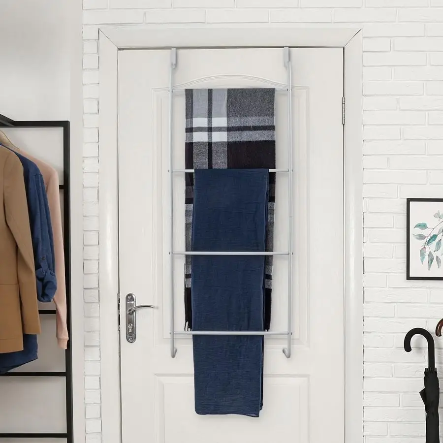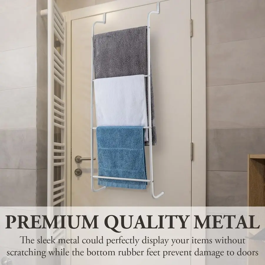 4tier rungs perfect for hanging bath towels, hand towels, blankets, and delicatesorks as both an over the door towel rack and over door drying rack for laundry, maximizing storage versatility.
