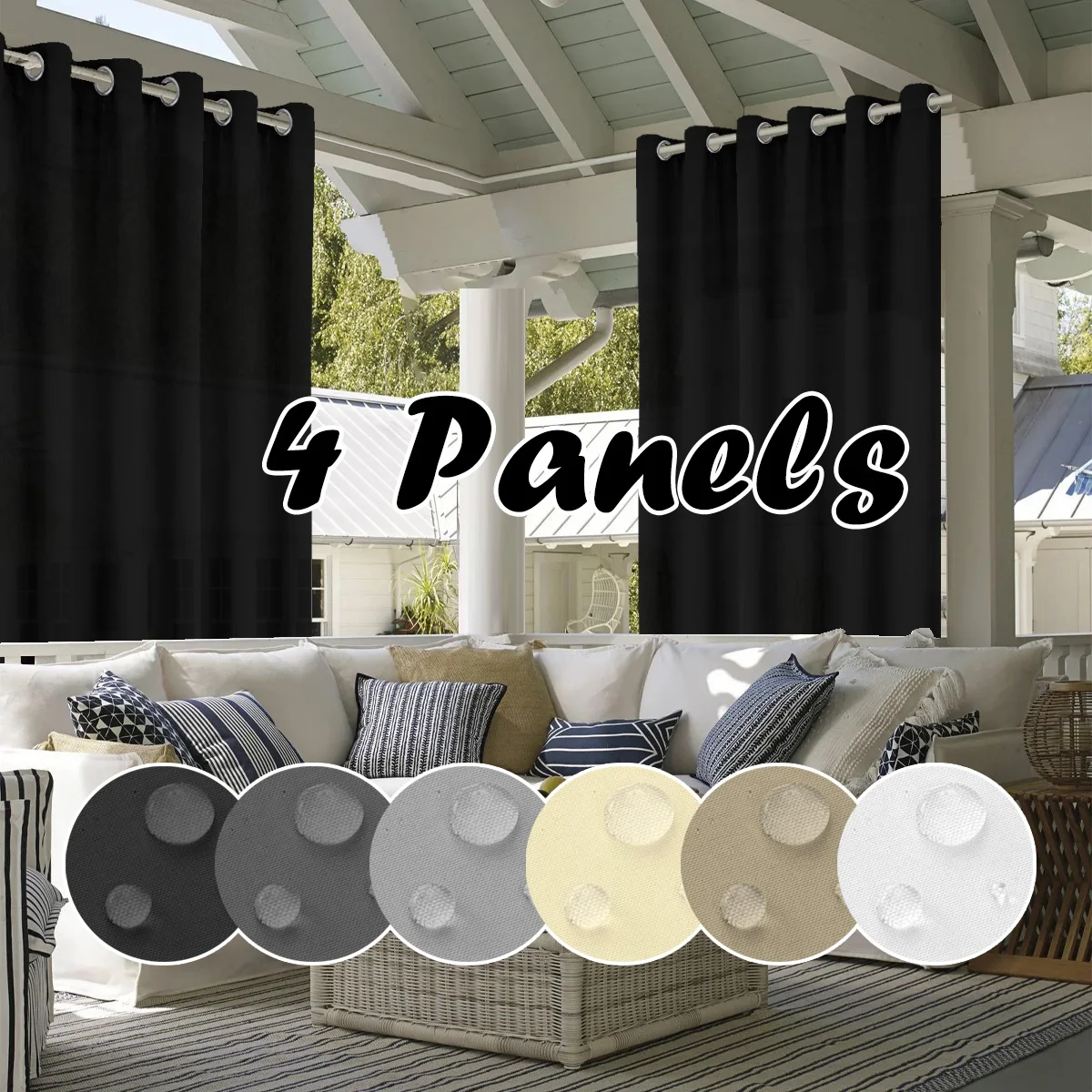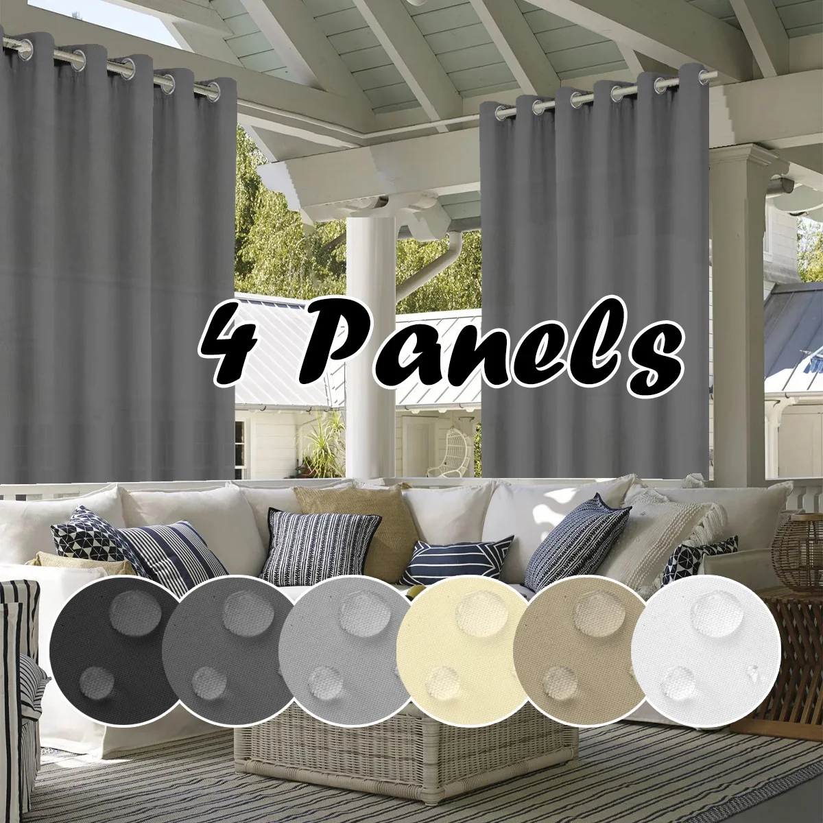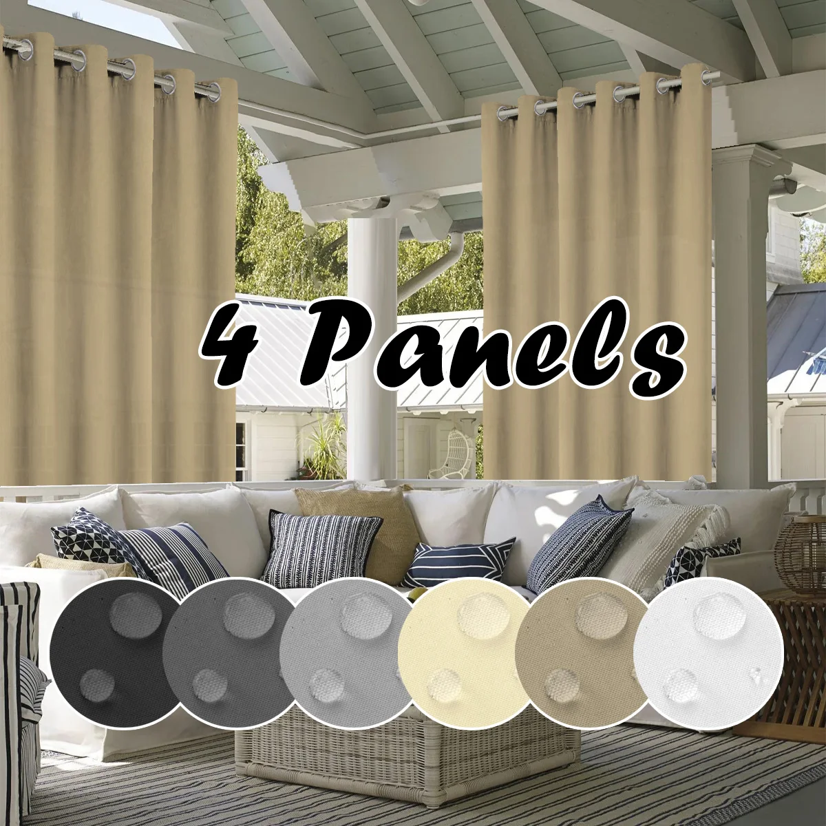 4PCS Waterproof Privacy Outdoor Curtain, Used For Pergolas, Front Porches, Awnings, And Protect Against Wind And Rain