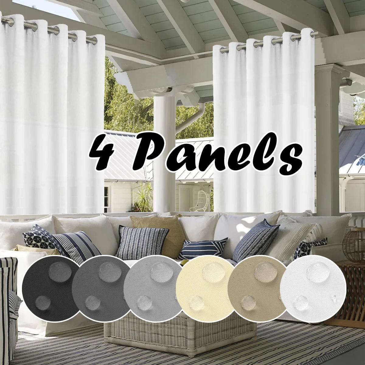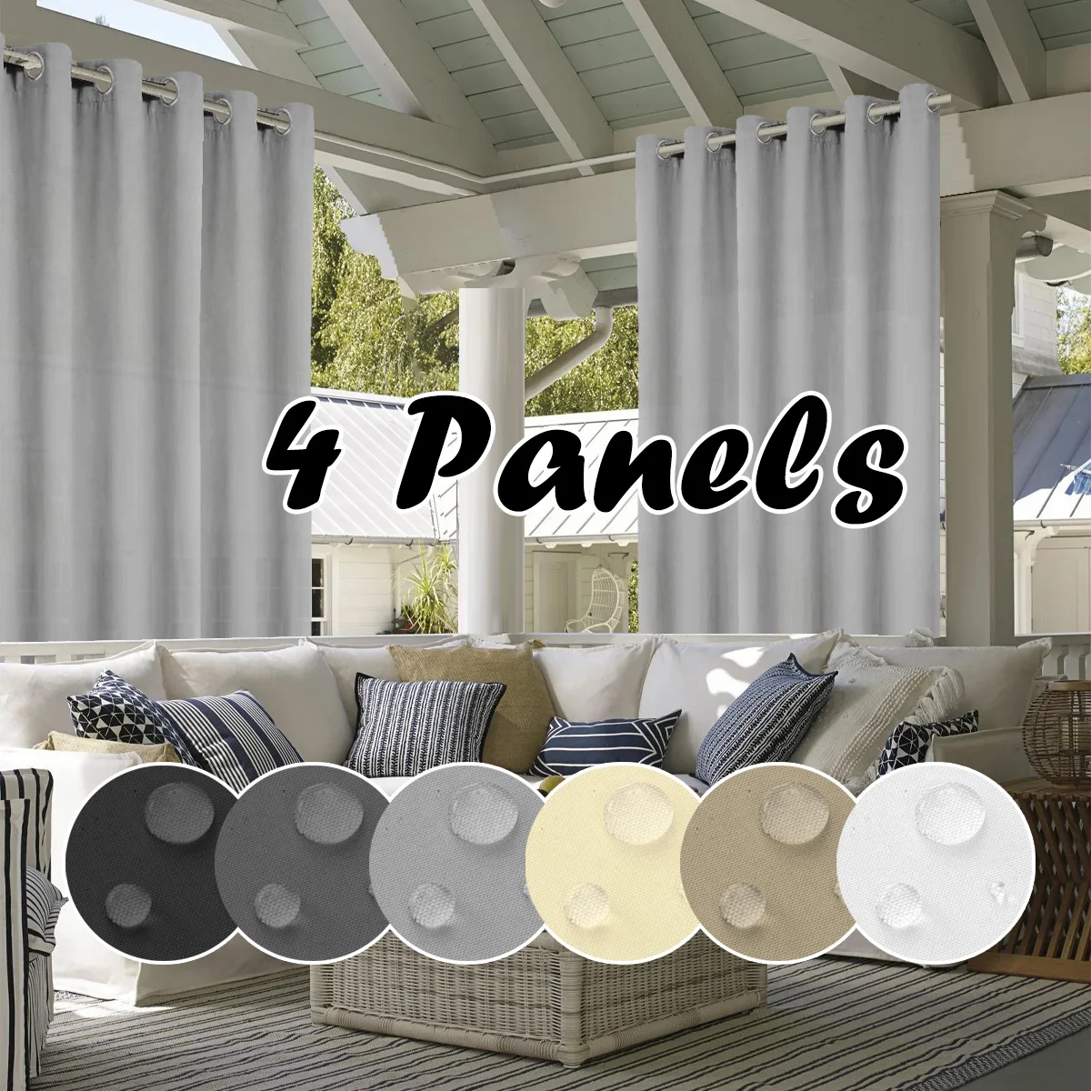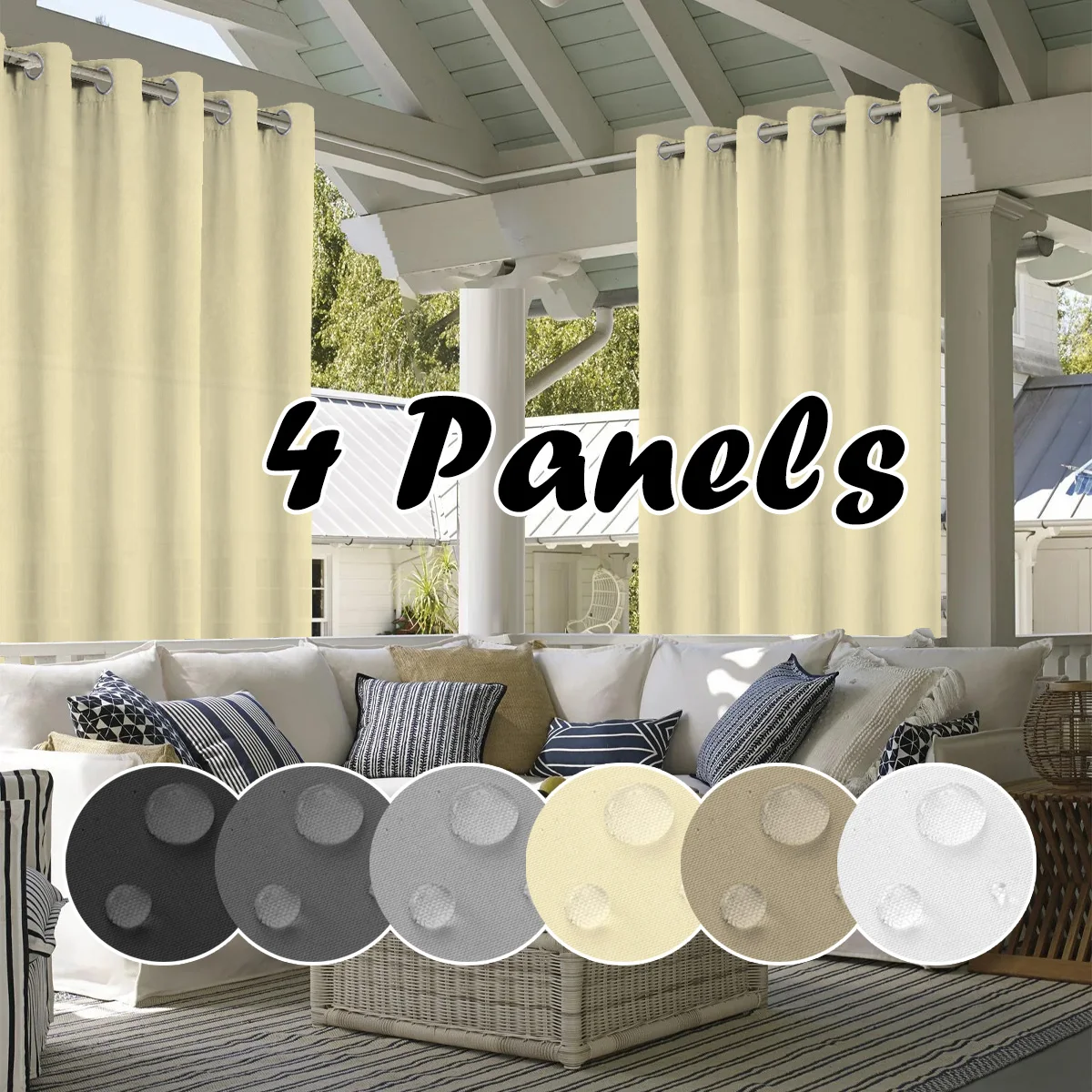 4PCS Waterproof Privacy Outdoor Curtain, Used For Pergolas, Front Porches, Awnings, And Protect Against Wind And Rain