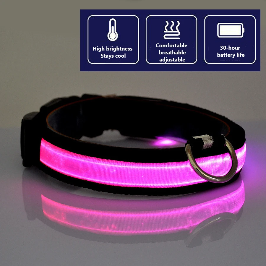 Glowing Dog Collar Nylon LED Night Safetly Glow In The Dark Dogs Collar Luminous Pet Accessories