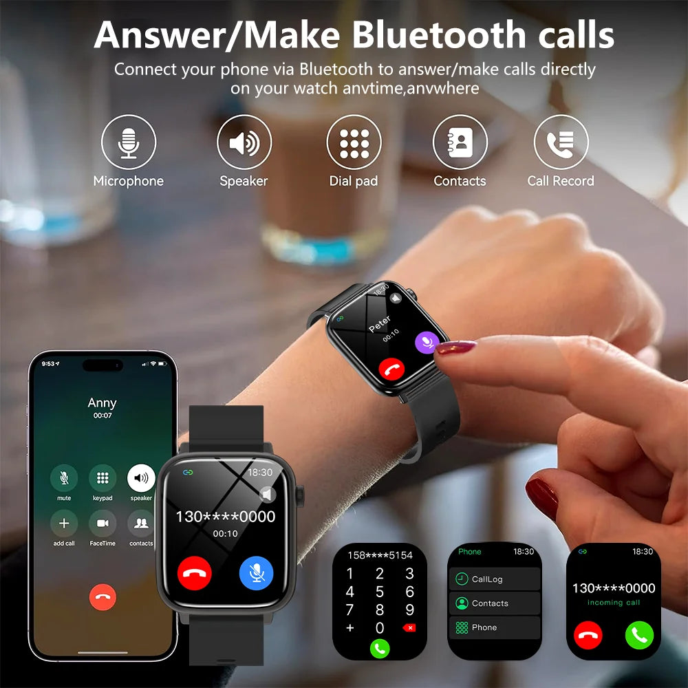 LAXASFI 2026 New Smartwatch 1.85-inch HD Touchscreen IP68 Water Resistance Sleep Monitor Bluetooth Call Stylish Smart Wristwatch