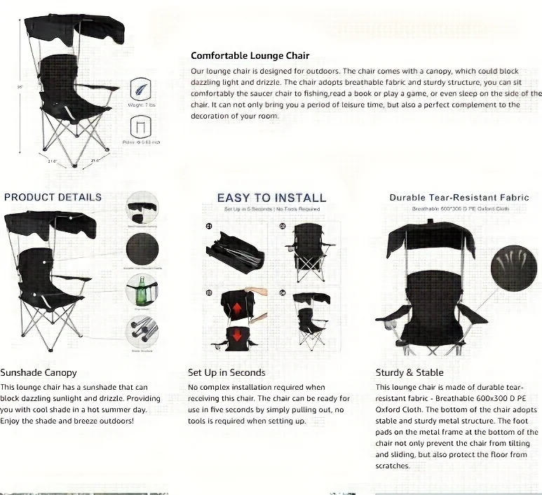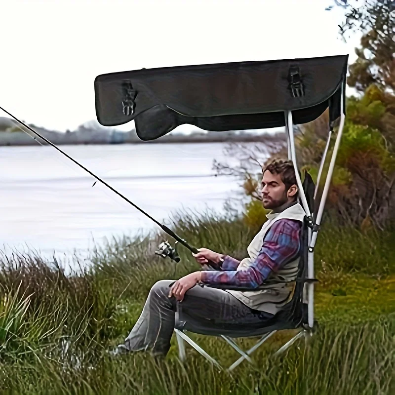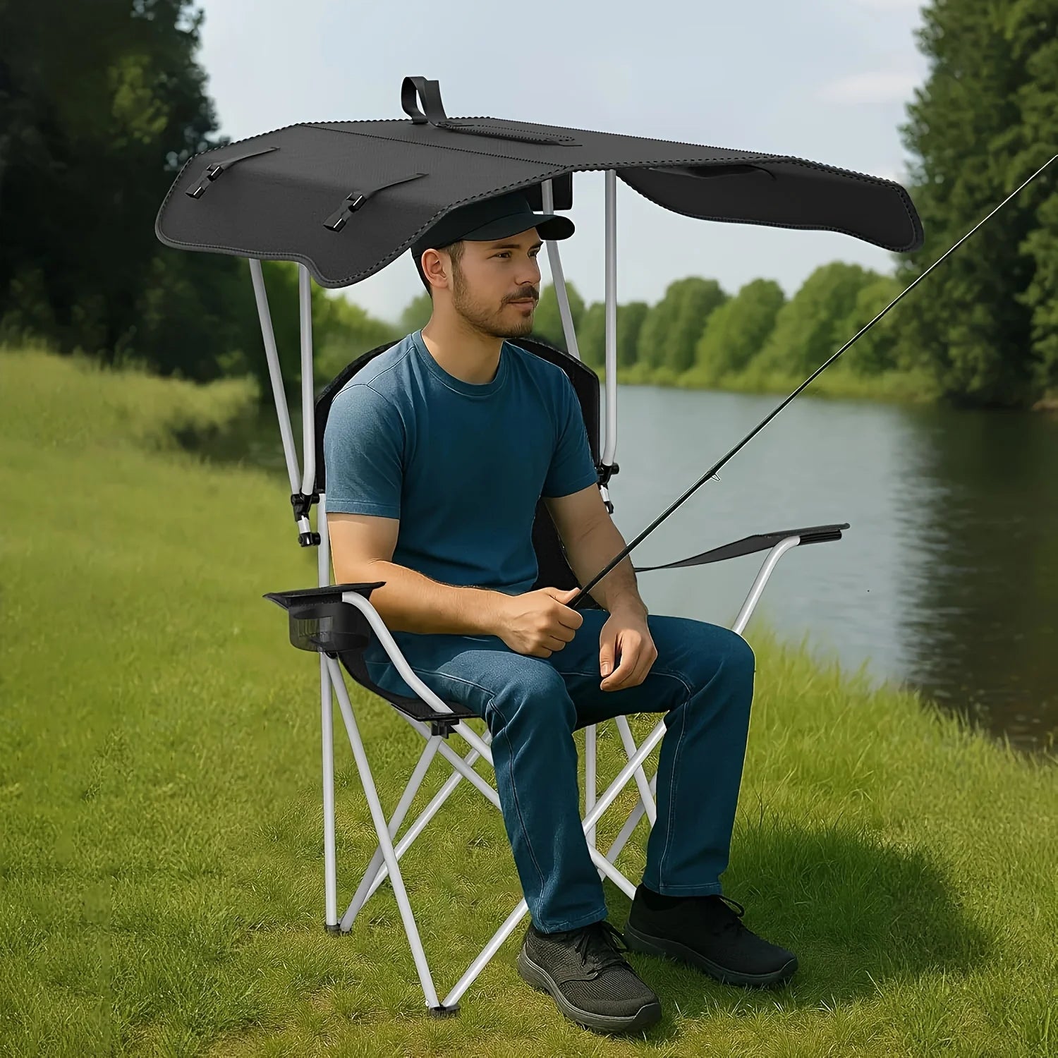 Portable folding fishing chair with sunshade - equipped with cup holder, portable and lightweight design, suitable for beaches