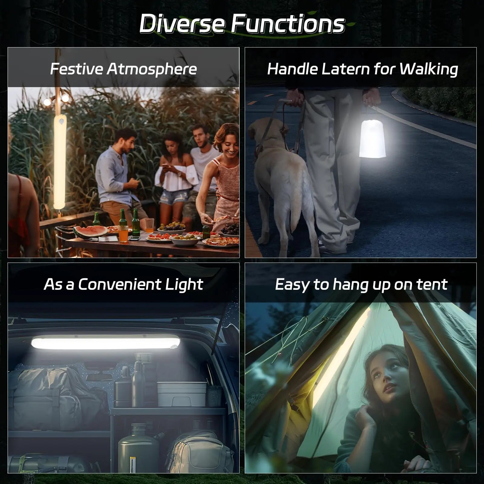 【Lighting Capability】Featuring a 32-inch (82 cm) PCB board material lamp, the glossy surface is made of frosted TPU material, which allows the light to be scattered over a larger area, providing a brighter and more even light that is not harsh on the eyes, featuring 3 light modes, the strobe mode provides useful emergency signals to ensure that you are able to draw attention to an unexpected situation and stay safe, and a long press of the on/off button makes it easy to switch between the brightness and modes at will to allow you to enjoy comfortable lighting in the night.